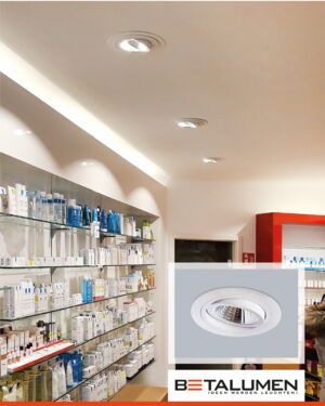 Die KARDO-LED Deckeneinbauleuchte kommt in der Goslarer Klubgartenapotheke als Retail Beleuchtung zum Einsatz. Wie so oft bei Renovierungs- und Sanierungsprojekten stand auch hier die Frage zum Umgang mit dem vorhandenen Deckenloch der früher eingesetzten Leuchte mit Halogen-Leuchtmittel. Um eine aufwendige Umarbeitung der Decke zu vermeiden, entschied sich der Inhaber für eine projektbezogene BETALUMEN-Lichtlösung, einer passend zum vorhandenen Deckenausschnitt maßgeschneiderten Einbauarmatur für die KARDO-LED. Die Leuchte ist dreh - und schwenkbar, die Lebensdauer überdurchschnittlich (LED > 80.000 h L80 B10, Konverter 100.000 h) und Abstrahlwinkel und Leistung sind individuell wählbar.
